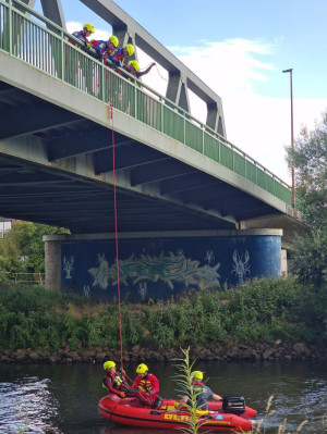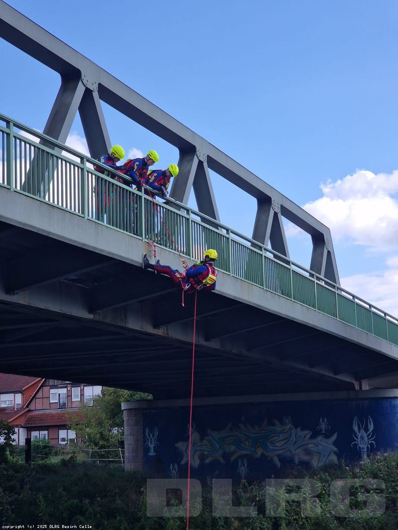 Gestartet wurde an der Feuerwehr Winsen (Aller), wo das Jugend-Einsatz-Team, interessierte Nachwuchsretter sowie ausgebildete Strömungsretter einen Einblick zum sicheren Abseilen am Feuerwehrturm erhielten. Parallel dazu wurden die Boote zu Wasser gelassen und erste Kontrollfahrten auf der Aller durchgeführt.